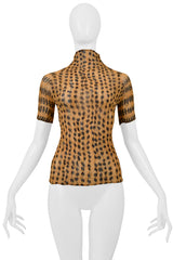 ISSEY MIYAKE TAN PLEATED SHEER TOP WITH ABSTRACT PRINT SS 2000