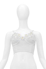 Resurrection Vintage is excited to offer a vintage Lolita Lempicka white cotton pique bustier top with daisy flower applique featuring a center back hook and eye closure.