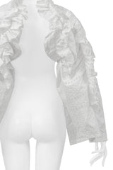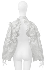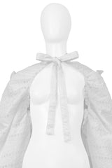 Resurrection Vintage is excited to offer a vintage Tao for Comme des Garçons white lace bolero featuring delicate eyelet lace, a tie-neck closure, flared sleeves, and ruffle sleeves.