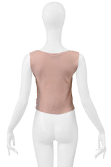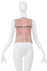 Resurrection is pleased to present an original cut and sew t-shirt from Vivienne Westwood and Malcolm McLaren's "SEX" collection, dating back to circa 1975. This exceptional piece is distinguished by its rare ball-and-chain zippers across the chest. The text featured on the t-shirt is derived from the work of beat writer Alexander Trocchi, specifically from his erotic novel *Helen And Desire*, which was published in 1954 by Olympia Press under the pseudonym Francis Lengel. The garment is labeled "Sex Original 430 Kings Road Chelsea" and is constructed from a sleeveless pink jersey, characterized by exterior seams and red printed text. This design is particularly rare and infrequently encountered, having never been revisited during the subsequent, more commercial 'Seditionaries' era.