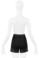 Resurrection Vintage is excited to offer rare and unusual vintage Versace Couture black shorts with gold Medusa button, zipper pull, and faux leather trim at the hem and waistband.