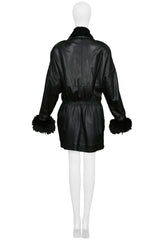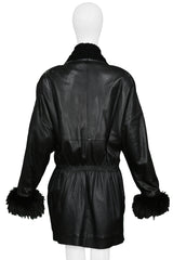 VERSACE BLACK LEATHER DRAWSTRING WAIST COAT 1990s