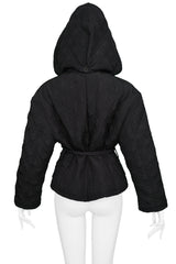 VERSACE BLACK NYLON QUILTED JACKET WITH HOOD