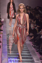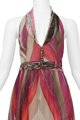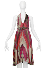 VERSACE PINK ABSTRACT PRINT HALTER DRESS WITH LACE PANELS 2000