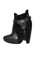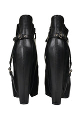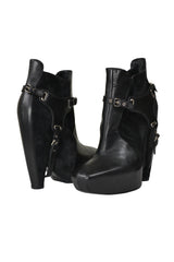 BALENCIAGA BY GHESQUIERE BLACK LEATHER & SUEDE HARNESS BOOTS 2006