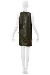 BALENCIAGA BY GHESQUIERE ARMY GREEN AND PINK LEATHER DRESS 2010