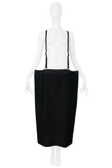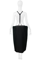 Resurrection Vintage is excited to present a vintage Yohji Yamamoto black oversized skirt featuring black suspenders and silver buckles and hardware. Yohji Yamamoto