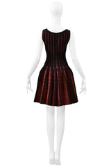 ALAIA BLACK & RED FANCY CHENILLE SWEETHEART DRESS