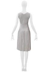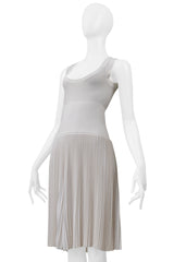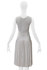 ALAIA WHITE LASER CUT PLEATED KNIT DRESS
