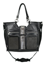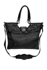 BALENCIAGA BLACK LEATHER AND STUDDED CHROME MESSENGER BAG 2007