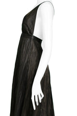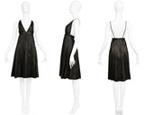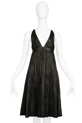Resurrection Vintage is excited to offer a vintage Alexander McQueen black leather "Fortuny crinkle" leather dress featuring an empire waist, a plunging neckline, a triangle top, an open back, a back center zipper closure, and skinny straps from the 2006 collection.
