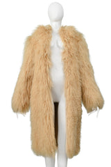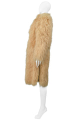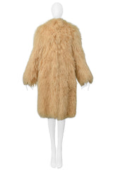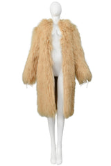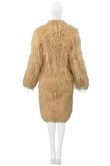 GUCCI BY TOM FORD CAMEL SHEARLING CHUBBY COAT WITH LEATHER SIDE PANELS & ZIPPERS 2001