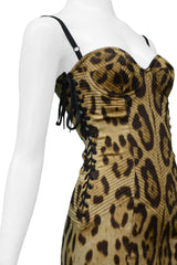 Resurrection Vintage is excited to offer a vintage Dolce & Gabbana brown-tone leopard print corset dress featuring a low neckline, adjustable straps, decorative quilting, side laces and grommets, and center back hook and eye closure.