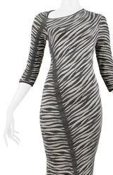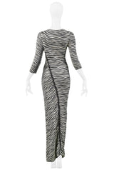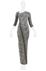 GIANFRANCO FERRE GREY & WHITE ZEBRA STRIPE MAXI DRESS 1999