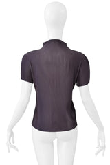 Resurrection Vintage is thrilled to present a vintage Issey Miyake pleats please two-toned illusion top with a high neck from the spring 2004 collection, featuring a mock neck, short sleeves, lightweight, and a slim fit.