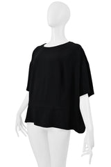 Resurrection Vintage is thrilled to offer a vintage Maison Martin Margiela black short sleeved top from 2002, featuring a round neck, drop shoulders, wide short sleeves, and a slight ruffled back hem.