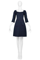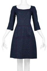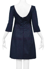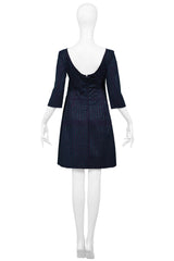 MIU MIU NAVY MINI DRESS WITH GREEN RHINESTONES