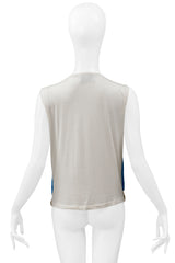 Resurrection Vintage is thrilled to present a Prada white t-shirt adorned with blue sequins on the front panel, gold sequin trim, a tank-style body, and a t-shirt back.