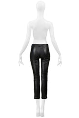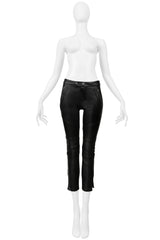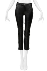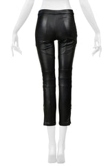 Resurrection Vintage is thrilled to present a pair of Saint Laurent Paris black leather moto pants with stretch featuring stitched details at the knees and thighs, slim fit, silver ankle zippers, and a center front zipper.