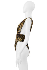 Resurrection Vintage is thrilled to present a Saint Laurent Paris by Anthony Vaccarello leopard print bodysuit with a deep V neckline, pleated bottoms, and side closure.