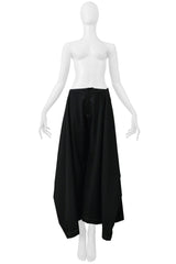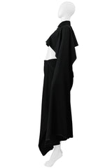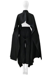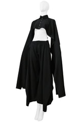 Y'S BY YOHJI YAMAMOTO BLACK CAPE TOP AND PANTS ENSEMBLE WITH WHITE STITCHING 2003-04