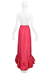 YVES SAINT LAURENT YSL PINK TAFFETA MAXI SKIRT WITH RUFFLES