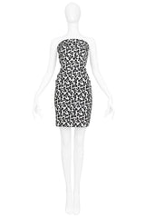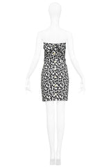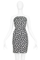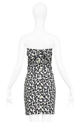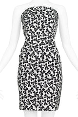 YVES SAINT LAURENT YSL BLACK AND WHITE BOW PRINT MINI DRESS
